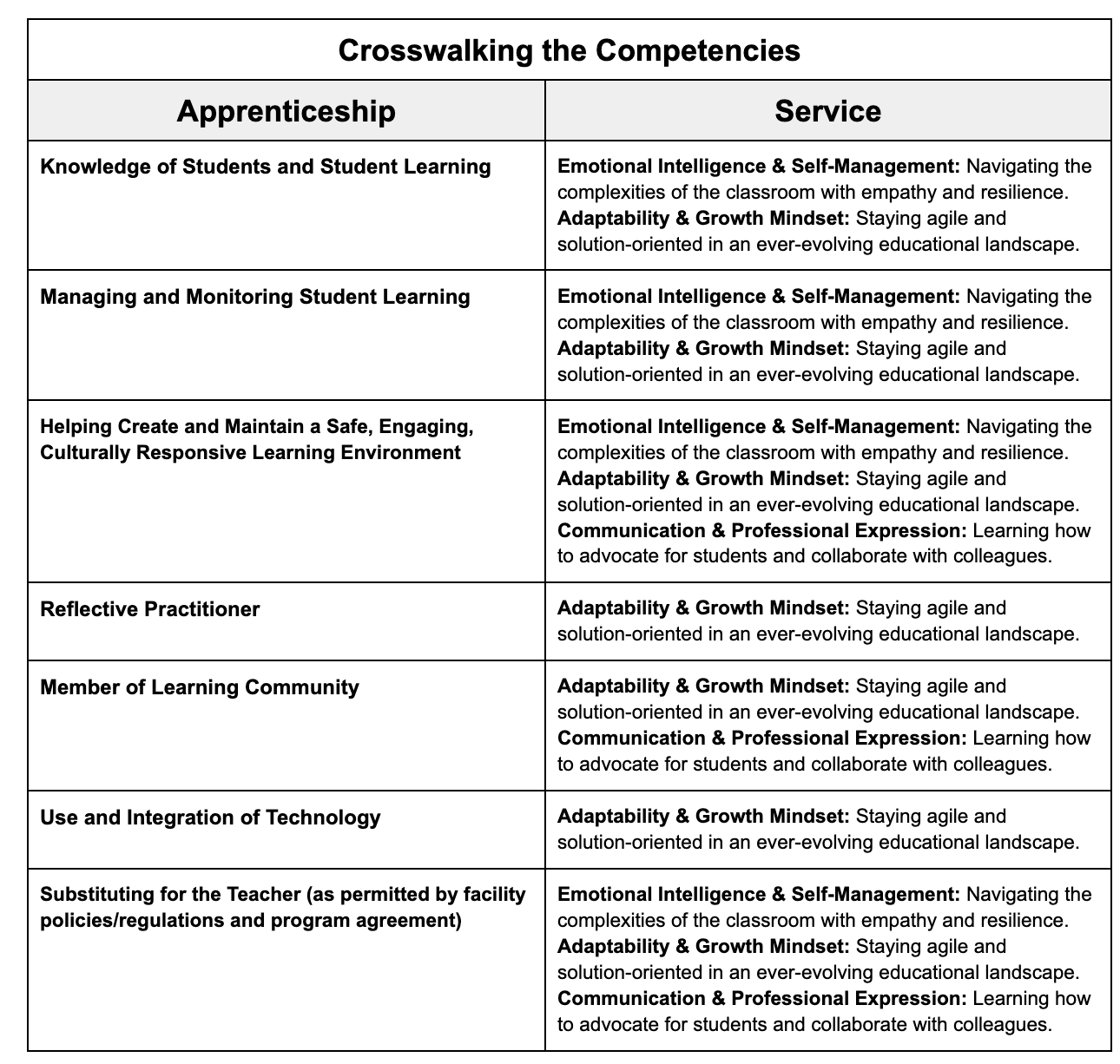 As an apprentice the AppleCORE member meets eight apprenticeship competencies that align closely with the service competencies.